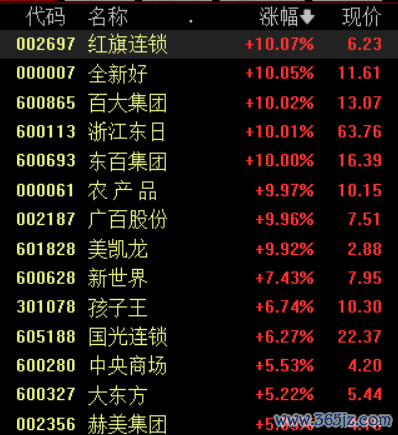 具体来看,大消费板块逆势爆发,阳光乳业、东百集团、全新好、皇氏集团等十余股涨停。